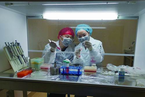 实验室内,学生将细胞接种到培养盒中进行人多能干细胞的分化、液袋加载、管路连接、排气泡、实验单元组装等;实验室外,雷晓华一步也不敢挪动。