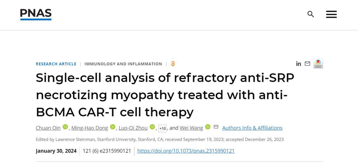 针对多种复发难治性自身免疫病,王伟教授团队通过CAR-T细胞治疗,为这类患者提供了全新的治疗方案。同时,王伟团队还结合单细胞测序、免疫组库等技术,对CAR-T细胞治疗自身免疫性疾病的潜在分子机制和治疗后的免疫微环境重塑等进行了深入地描绘,该项目的研究论文也于1月31日在线发布在国际著名期刊《美国国家科学院院刊》(PNAS杂志)。