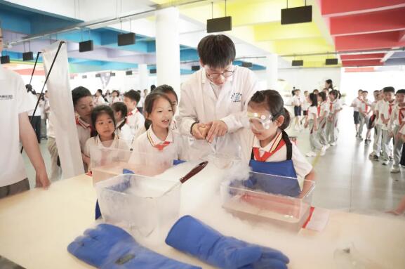 活动现场,八大胜集团带来的金鱼复活实验成为了最大的焦点。在-196℃的液氮中被速冻后,小金鱼奇迹般地复苏,这一幕让在场的孩子们惊叹不已,为加深同学们的理解,八大胜集团的工作人员还邀请了两名学生代表,在专业指导下亲自操作实验,让他们在亲身体验中感受科学实验的严谨与乐趣。