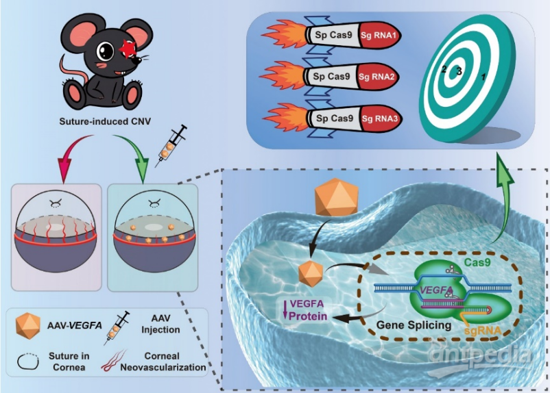 据悉,血管内皮生长因子(简称:VEGF)是血管生成过程中的关键调控因子之一。黄锦海/周行涛团队从临床需求出发,精准锁定促血管生成的关键驱动因子,筛选开发了一种针对VEGFA基因的CRISPR/Cas9基因编辑系统。