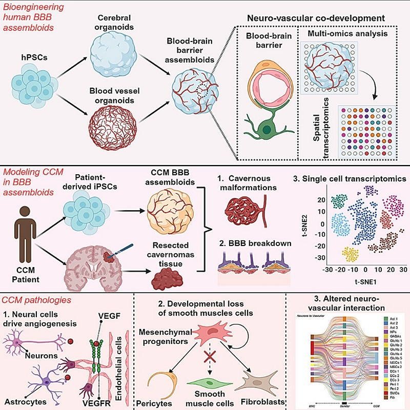 该组装体由特定脑疾患者的干细胞培育而成,因此能够反映可能导致血脑屏障功能障碍的基因突变等条件。研究团队采用这些患者的干细胞,成功构建了能够精准再现大脑海绵状畸形关键特征的组装体,为深入探究该脑疾病的分子与细胞病理学机制提供了崭新视角。