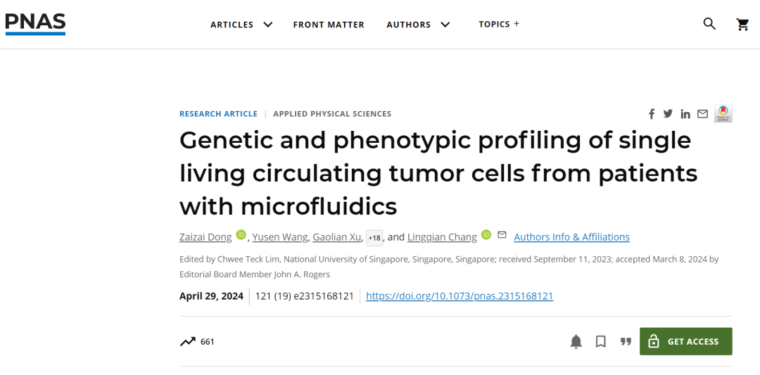 近日,北京航空航天大学生物与医学工程学院常凌乾团队报道了一种新型纳米医疗芯片,可以快速检测肺癌循环肿瘤细胞(CTCs)内PD-L1基因表达、以及肿瘤细胞响应免疫细胞的行为表型;进一步对患者来源的CTCs进行亚群划分,依此预测肺癌患者对免疫疗法的治疗效果。与传统组织活检技术相比,临床准确率(AUC值)由57%显著提高到90%以上。相关研究结果以“Genetic and phenotypic profiling of single living circulating tumor cells from patients with microfluidics”为题,发表在PNAS上。