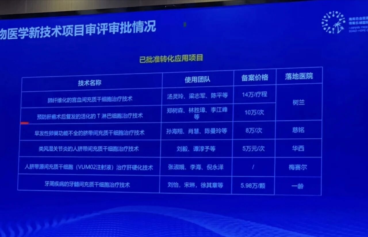 3. 人脐带间充质干细胞(VUM02注射液)治疗肝硬化技术:梅赛尔医院推出,价格待定。肝硬化晚期并发症多,该技术若成功应用,将提供更有效治疗选择。